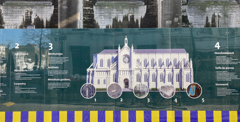 The restoration works of the North façade of the Sainte Catherine church, overlooking the quays of the 'Fish Market' in the centre of Brussels, recently started. The natural stone, the woodwork, the stained-glass windows and the fence will all be restored.